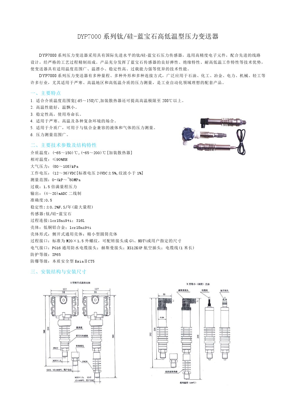 DYP7000系列鈦 硅-藍寶石高低溫型壓力變送器