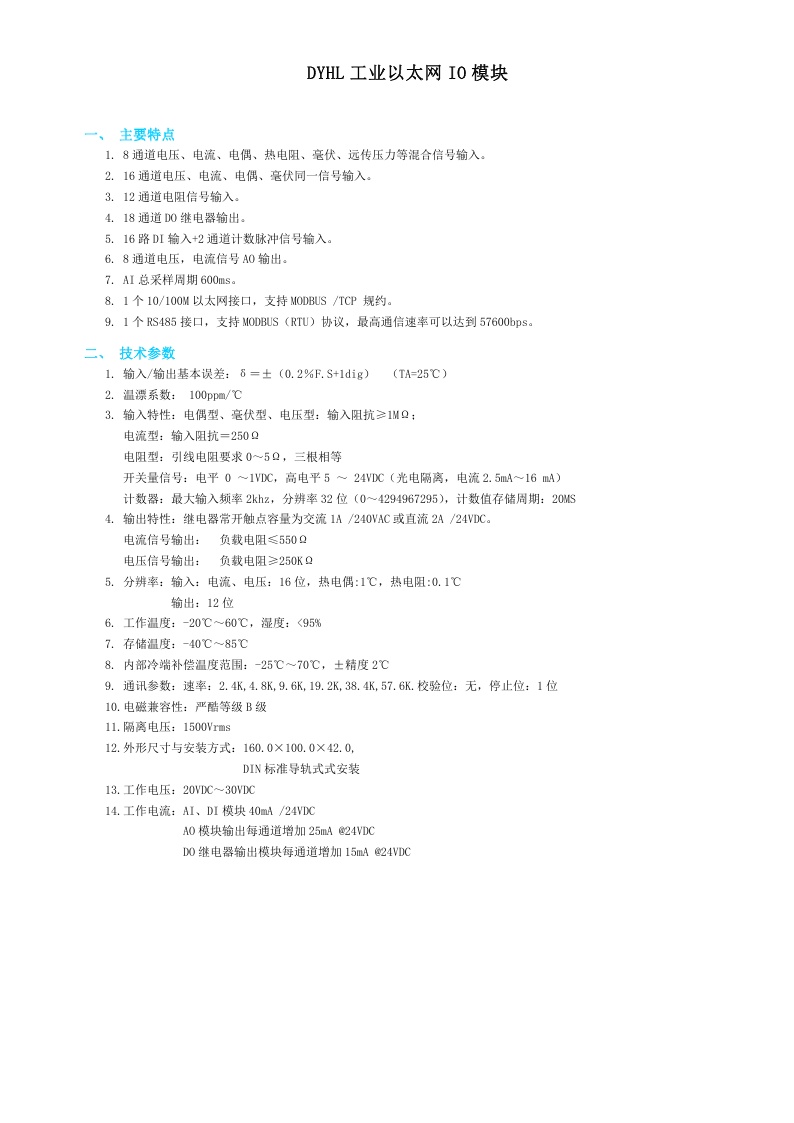 DYHL工業(yè)以太網(wǎng)IO模塊