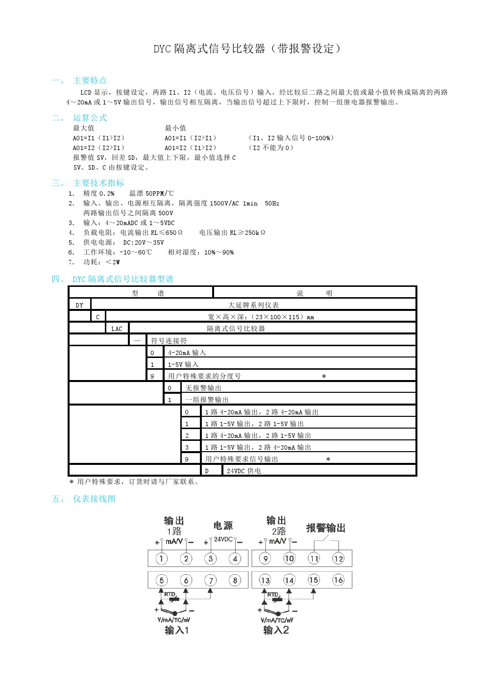 DYC隔離式信號比較器(帶報警設(shè)定)