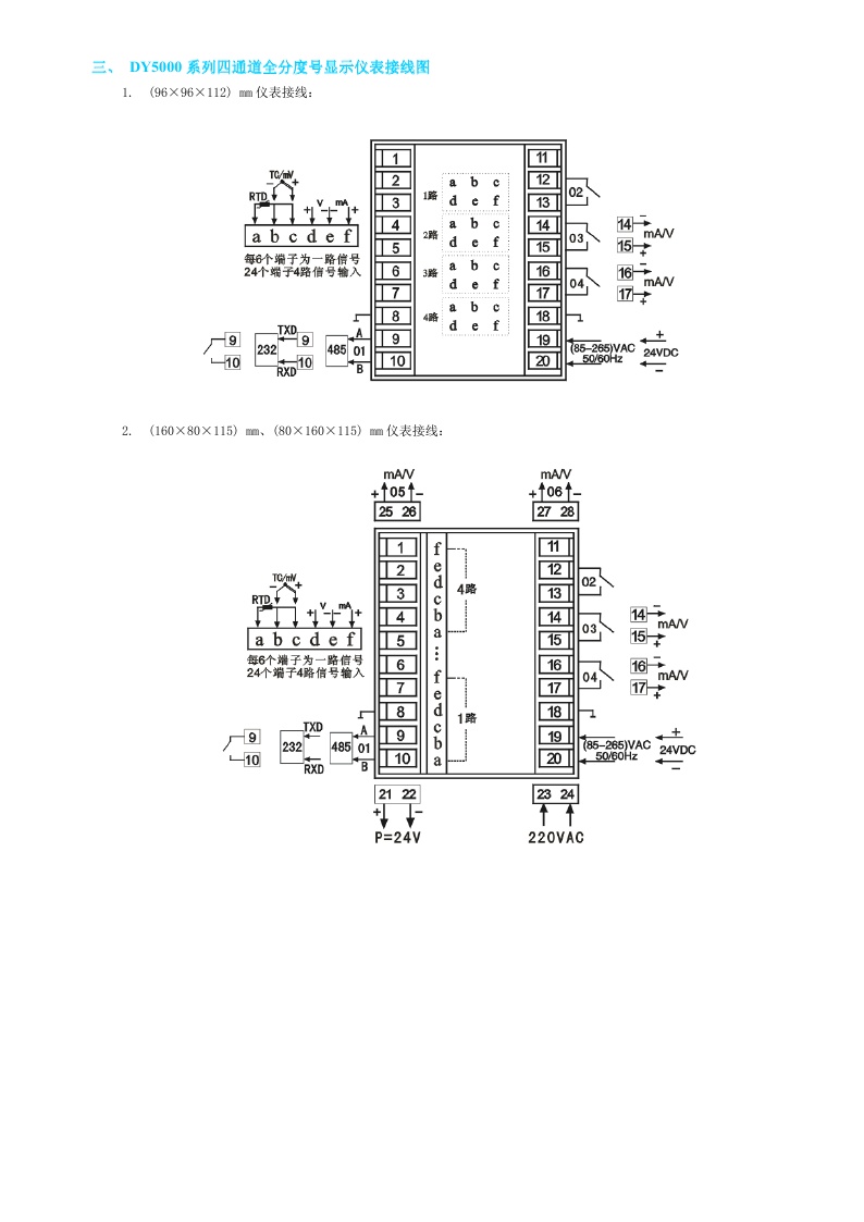 DY5000(FE)系列四通道全分度號(hào)顯示儀表