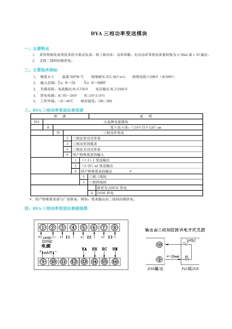 DYA三相功率變送模塊