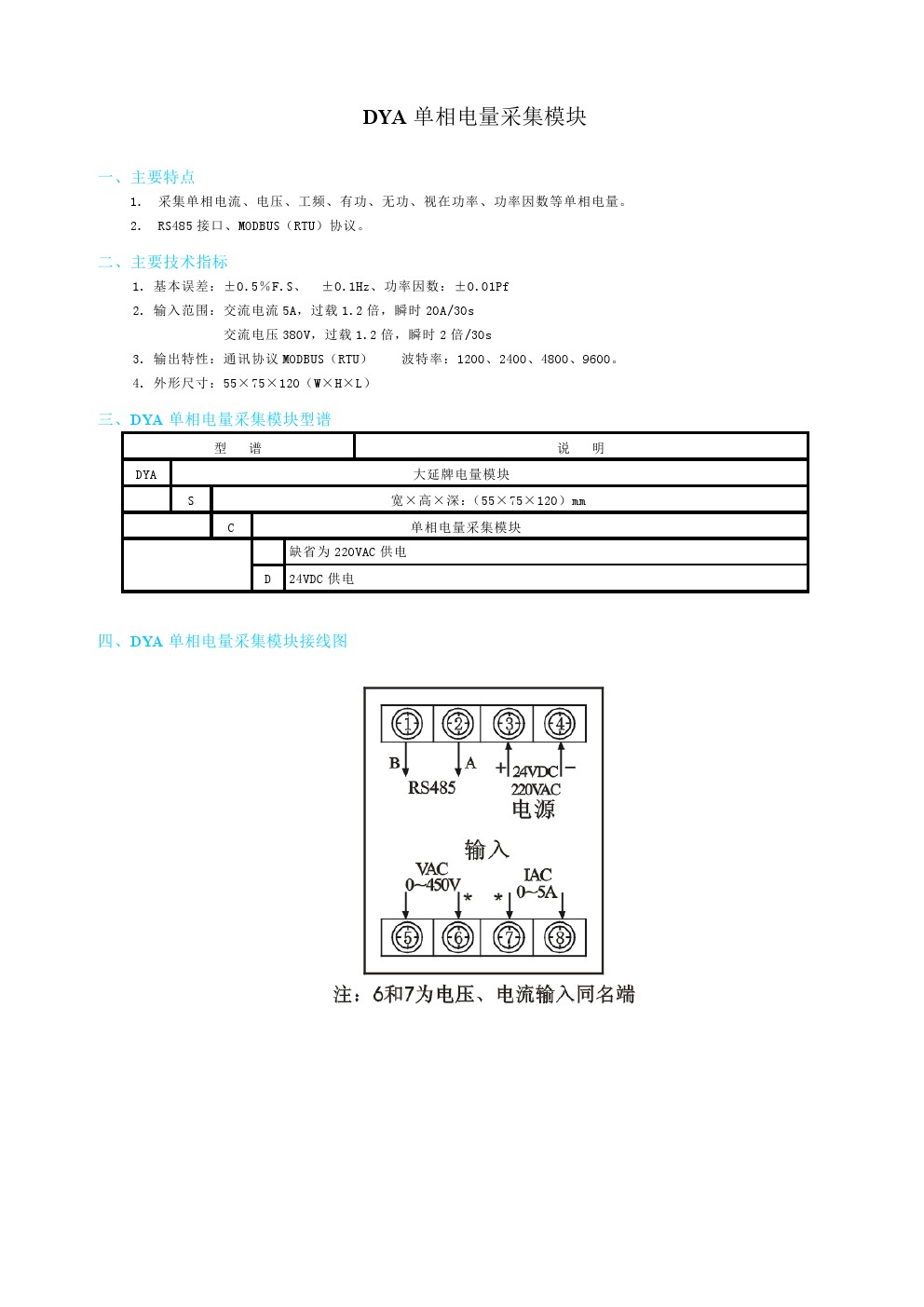 東輝儀表DYA單相電量采集模塊