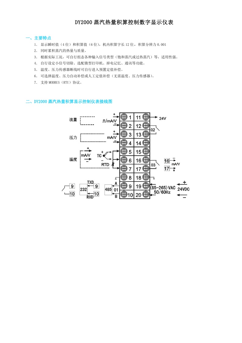 DY2000(S)蒸汽熱量積算控制數字顯示儀表