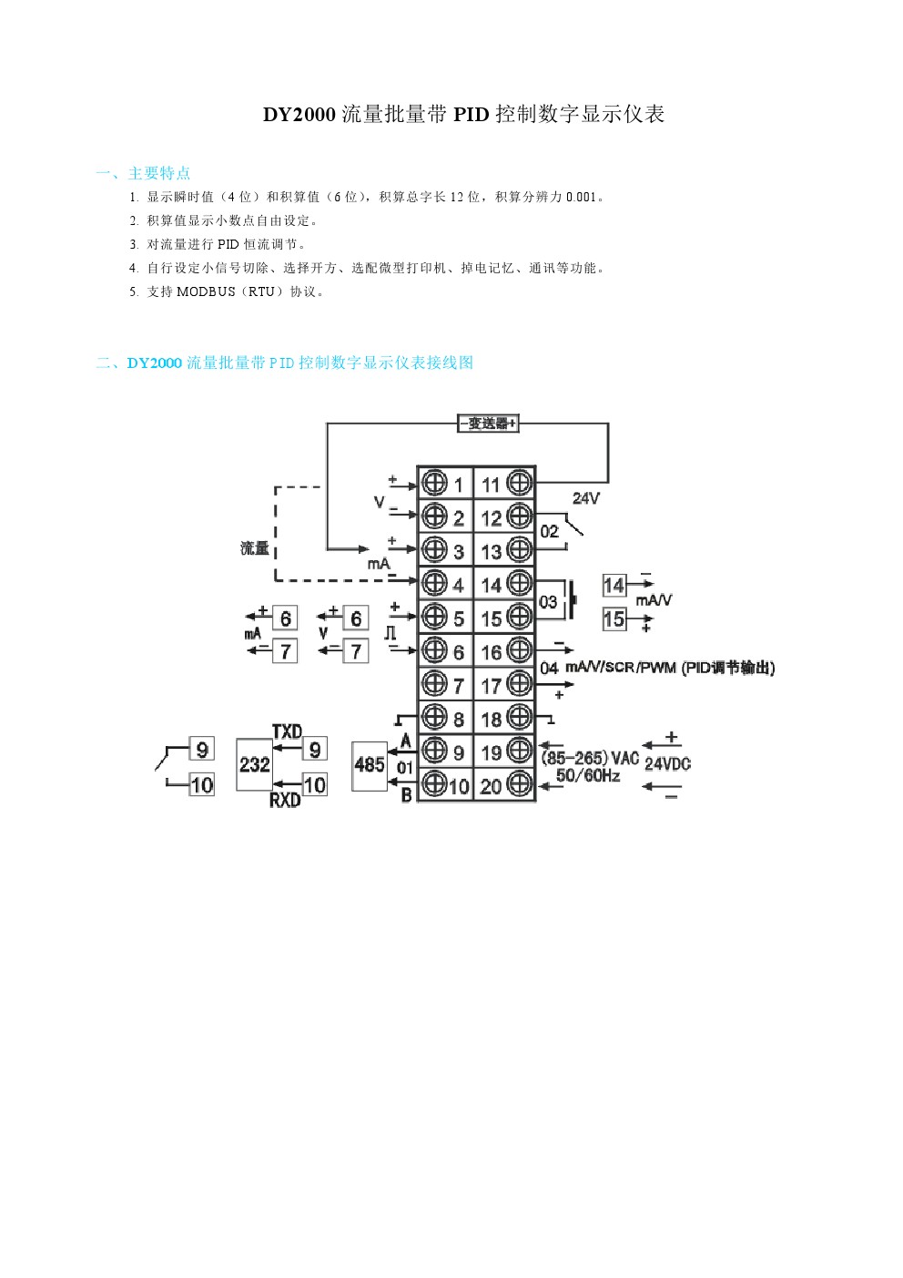 DY2000(AH)流量批量帶PID調(diào)節(jié)控制數(shù)字顯示儀表