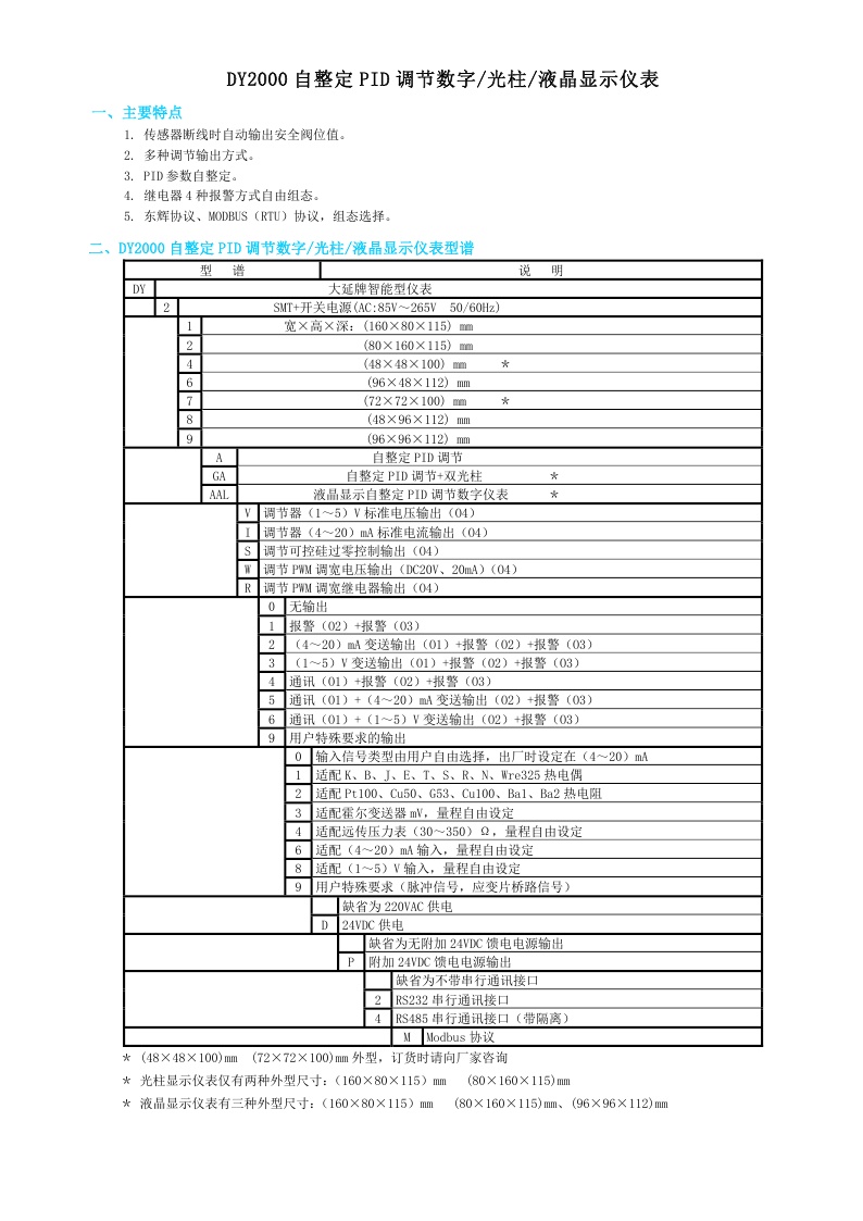 DY2000(A)自整定PID調(diào)節(jié)數(shù)字/光柱/液晶顯示儀表