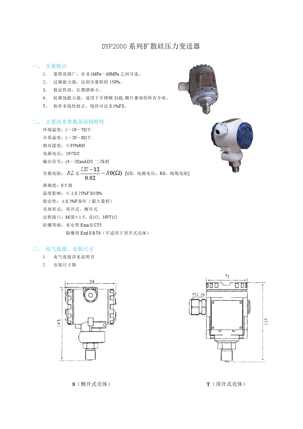 DYP2000系列擴散硅壓力變送器