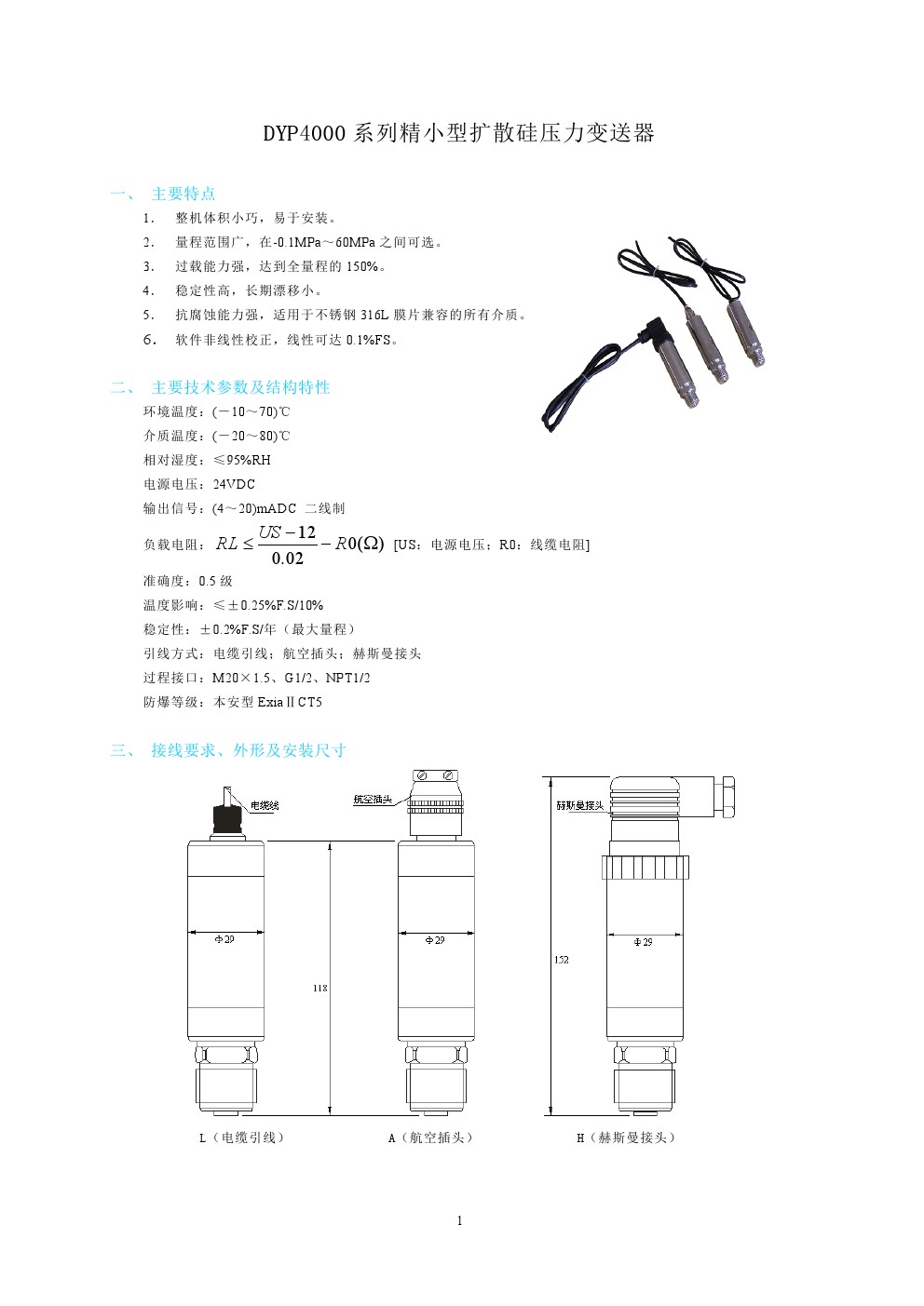 DYP4000系列精小型擴散硅壓力變送器
